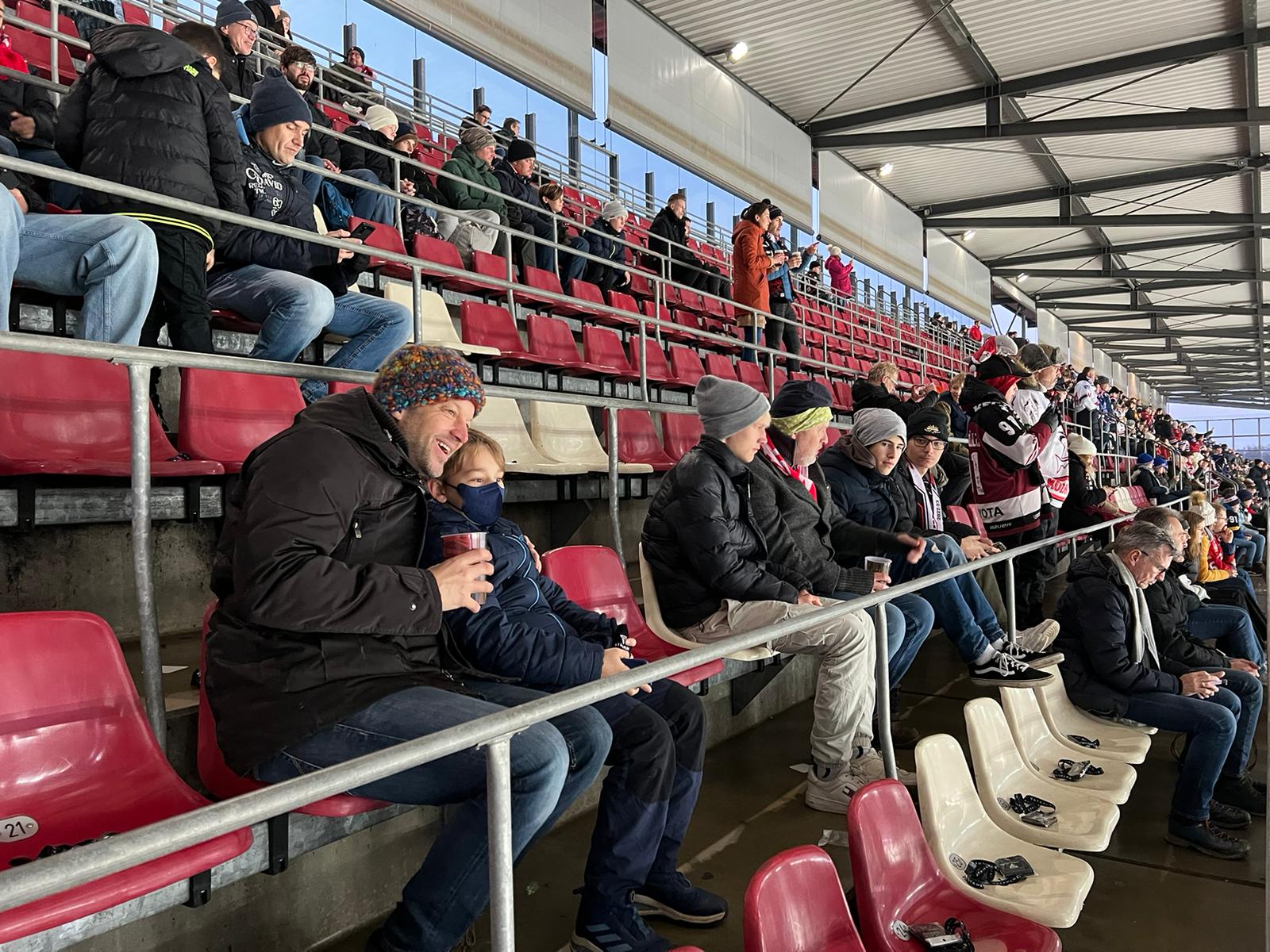 Am vergangenen Samstag fanden sich bei kalten Temperaturen circa 20 Staubwolkler in Müngersdorf ein, um mal eine andere Sportart näher kennenzulernen. Nein, kein Fußball, Eishockey ist hier im Winter angesagt. Das Fazit war rundum positiv – und mit dem Heimsieg des KEC die Stimmung entsprechend. Besonders imponierend die Fans der Mannheimer – lautstark bis zum Ende, trotz der Niederlage (4:2).