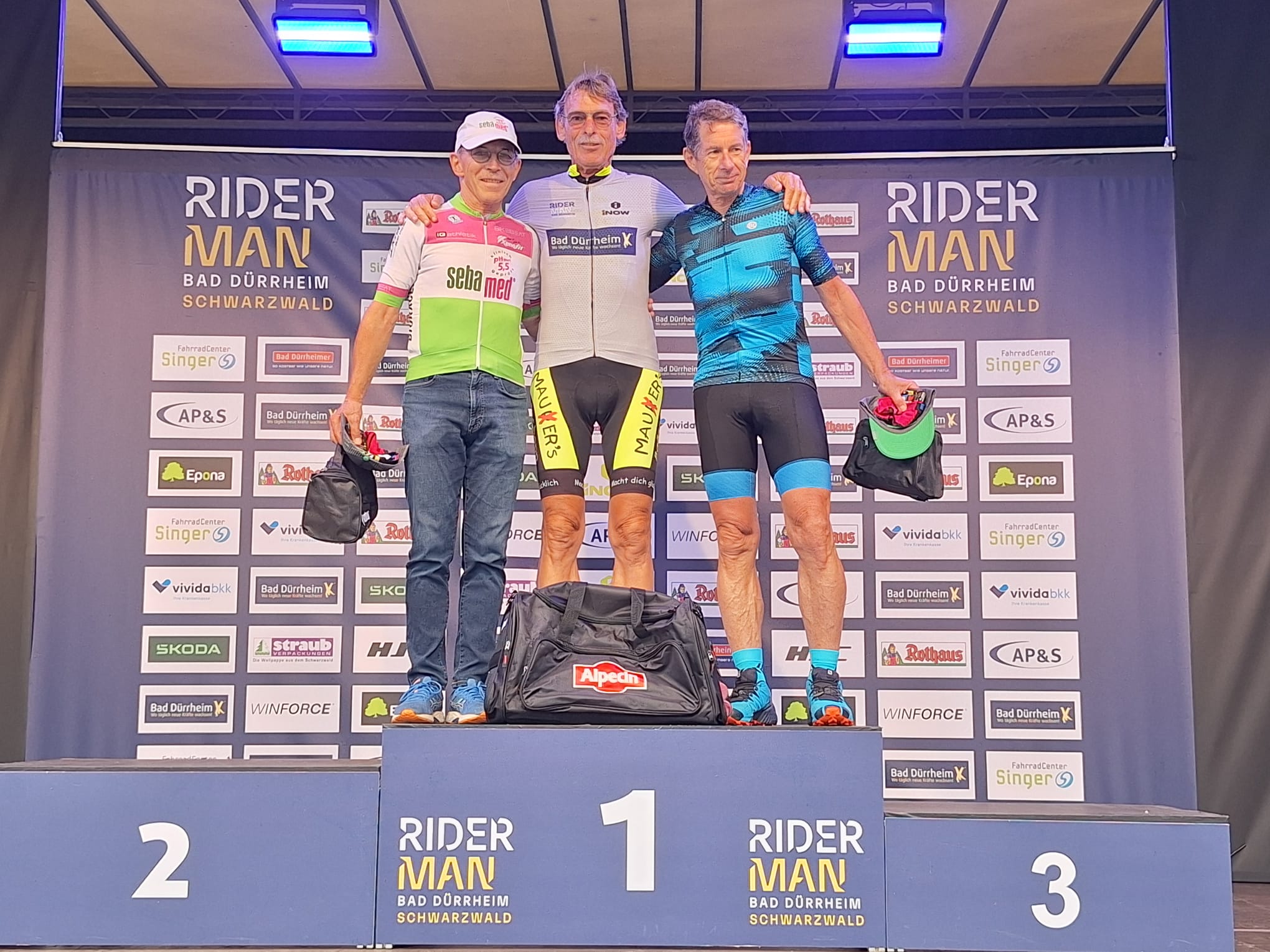 Bei der Riderman-Veranstaltung in Bad Dürrheim im Schwarzwald erreichte Staubwolke-Oldie Erich Hammerschmidt am Sonntag in der Altersklasse Master 5 nach drei schweren Etappen und 226km den zweiten Gesamtrang in seiner Altersklasse Masters 5 in einer Zeit von 6:55:39 Stunden, hinter seinem Konkurrenten Ulrich Drebing aus Kassel. Der Gesamtsieg beim German Cycling Cup (GCC) in der Altersklasse ist damit weiter ungefährdet.